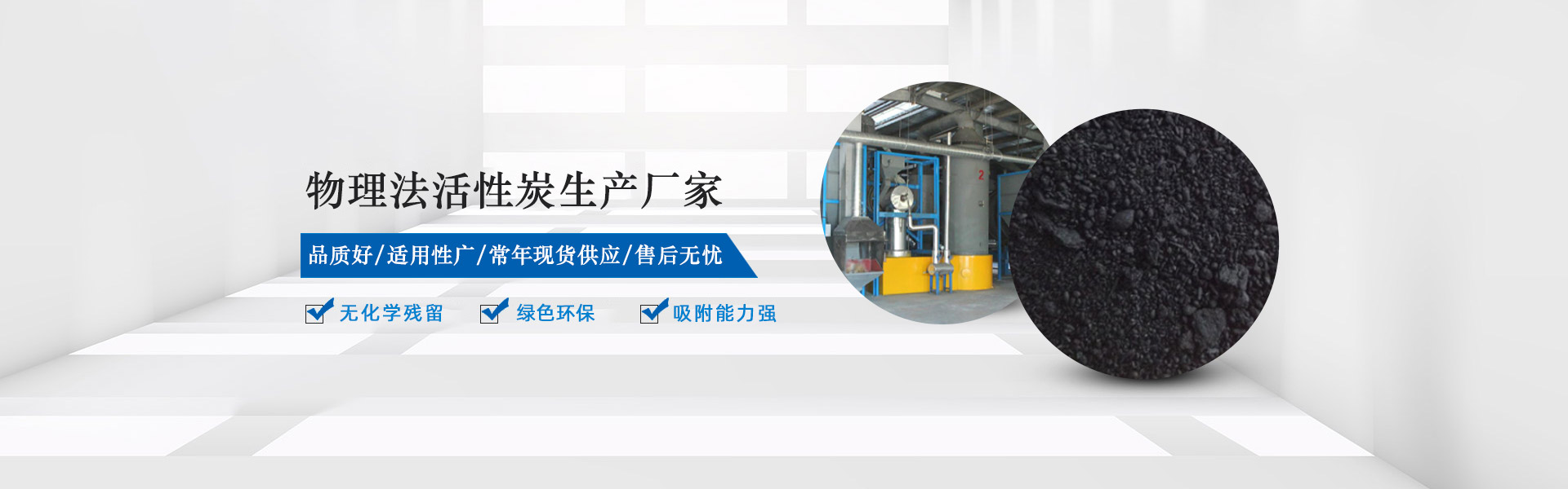 公司設(shè)計(jì)規(guī)模為20條物理法活性炭生產(chǎn)線,可年產(chǎn)2萬(wàn)噸高品質(zhì)物理法活性炭,產(chǎn)品無(wú)化學(xué)殘留,綠色環(huán)保,具有比表面積大,吸附能力強(qiáng),耐磨強(qiáng)度高,過(guò)濾速度快等優(yōu)點(diǎn)。